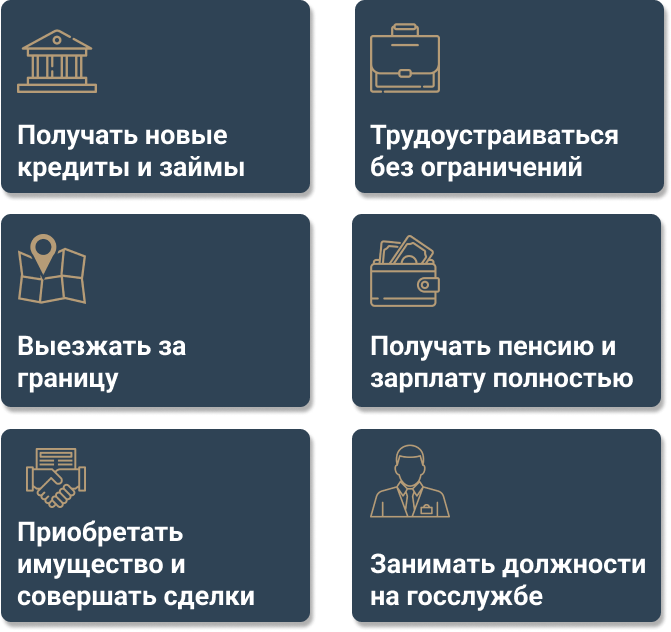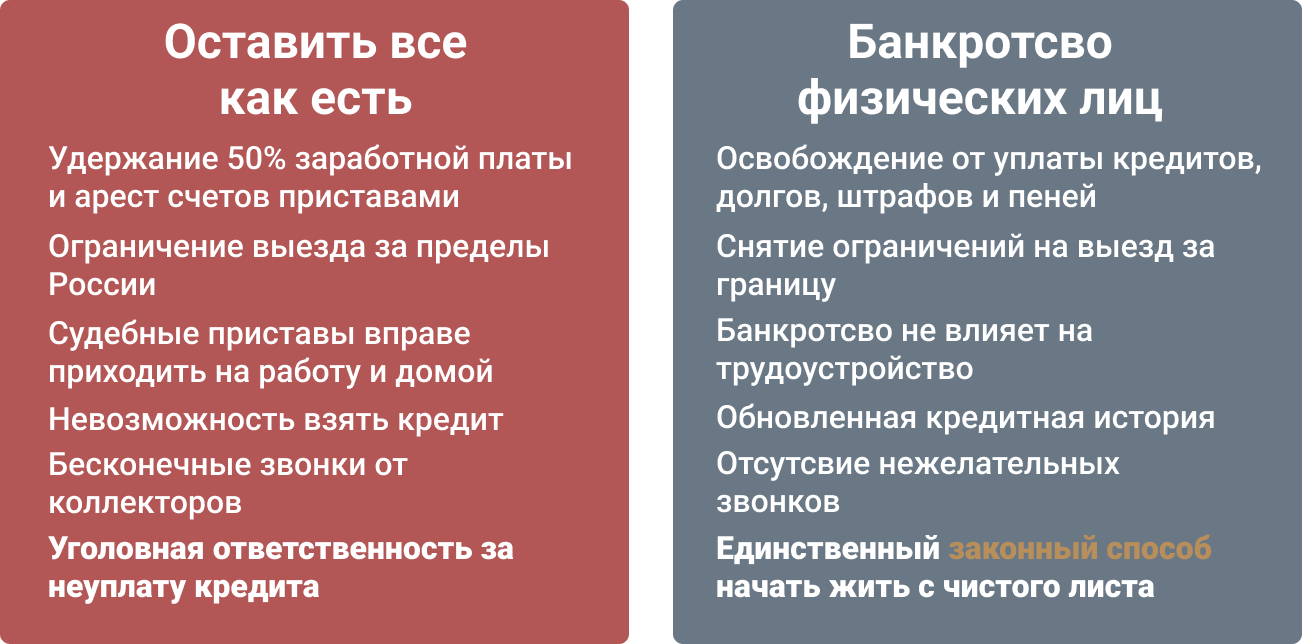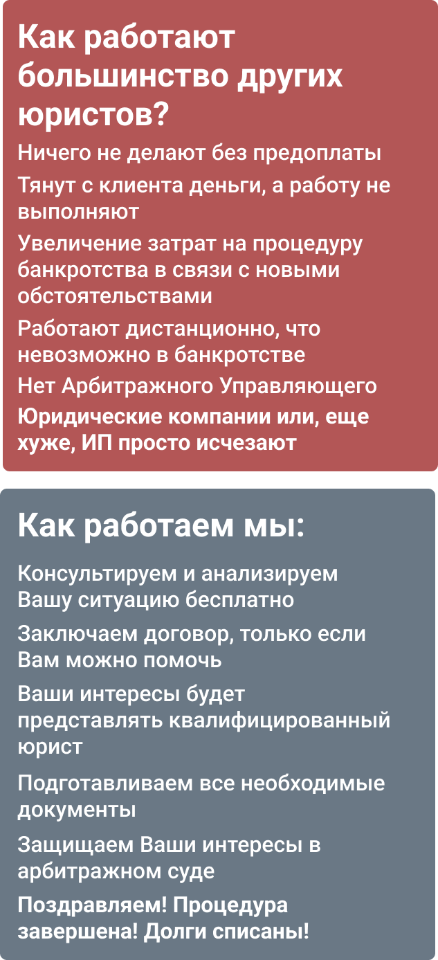 Перед началом работы мы детально анализируем ситуацию для того, чтобы понять, подходите ли вы на 100% под условия ФЗ №127, и только после этого начинаем работать.